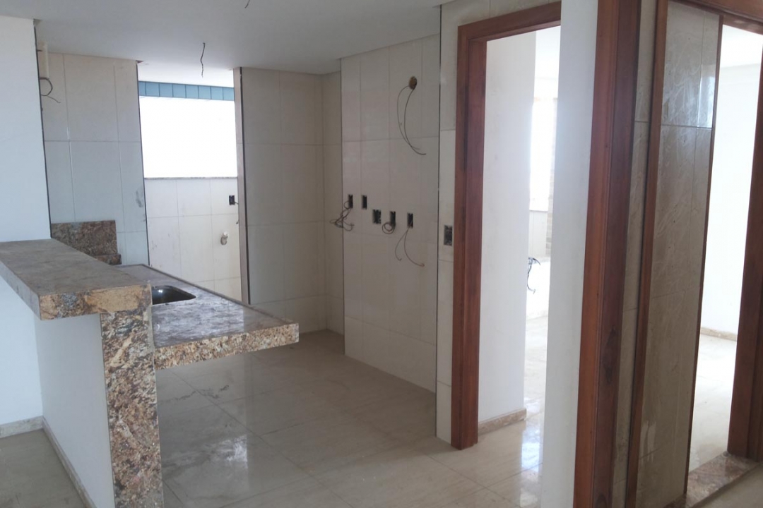 - Áreas molhadas (coz/sev/wcs) - piso e paredes em porcelanato esmaltado (50x50cm)