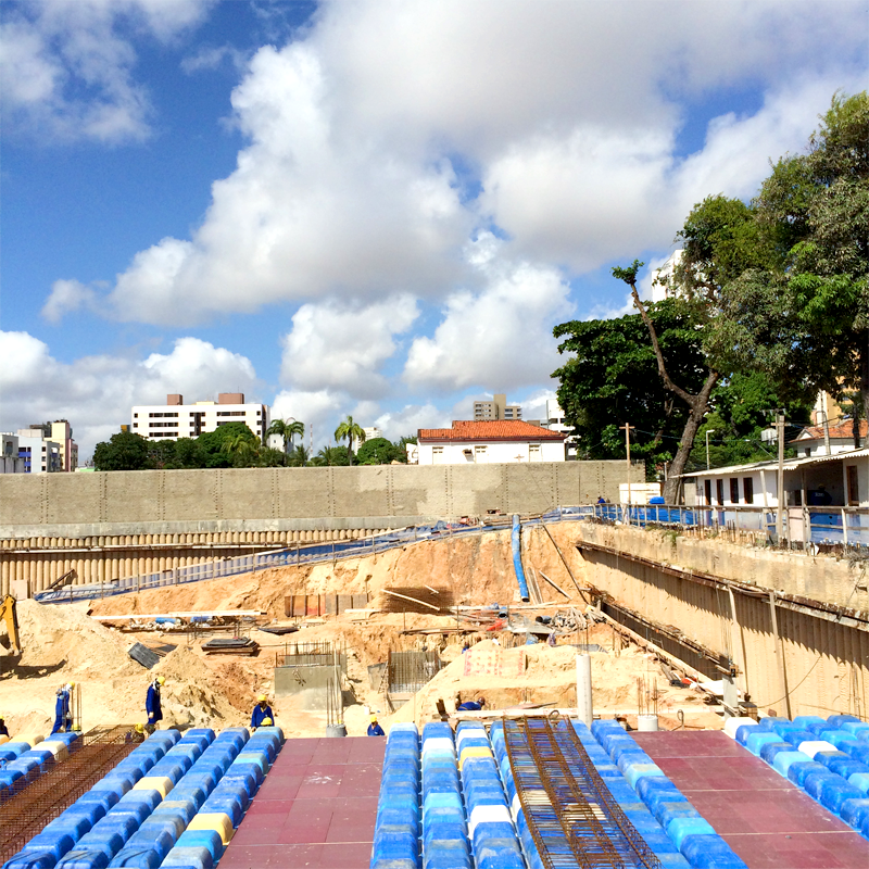 - Subsolos revestidos e pavimentados em cerâmica, arejados e iluminados com jardins;