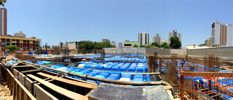 - Sistema de tratamento de águas cinzas, com uma estação de tratamento que receberá as águas servidas dos chuveiros e lavatórios dos apartamentos, condicionando-as a serem reutilizadas nas bacias sanitárias do edifício e irrigação dos jardins;